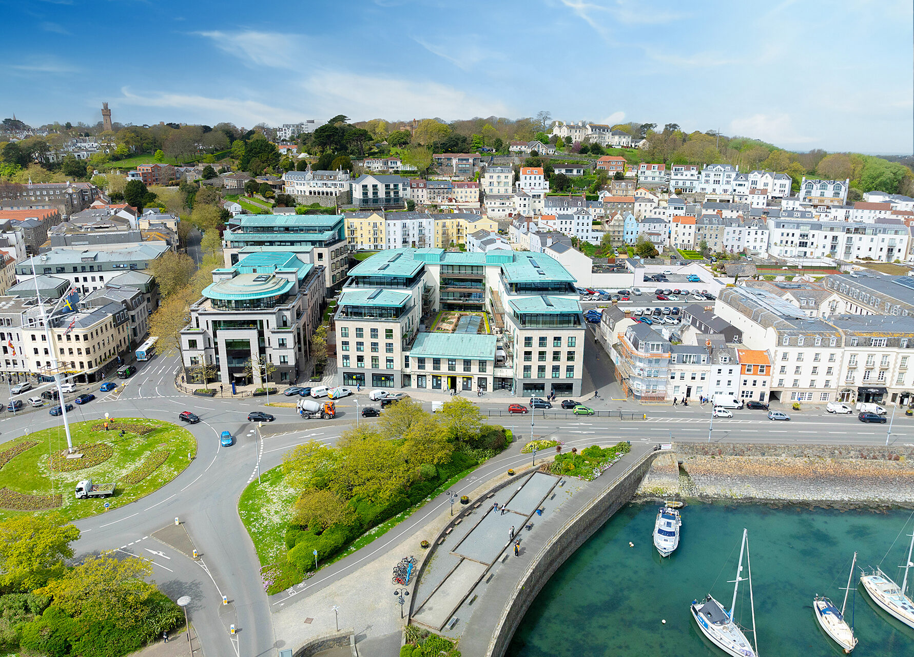 Its thriving square-mile in the business sector includes leading names in finance, insurance and law and Admiral Park is a modern, dockland-style redevelopment of apartments, offices and one of two Waitrose mega-stores in the parish.