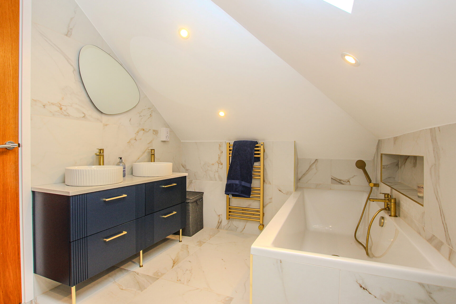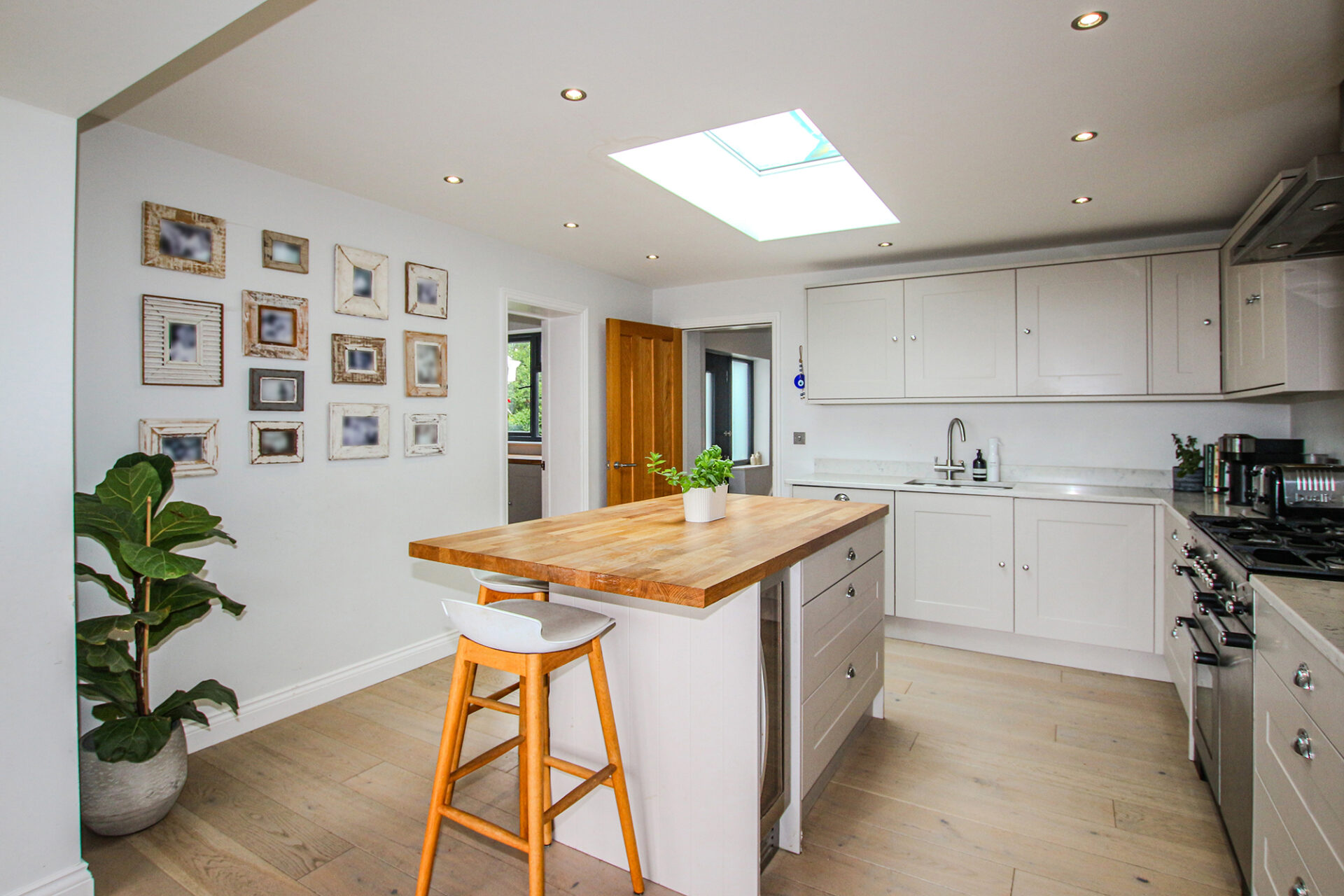 This beautifully renovated and extended four-bedroom family home offers the perfect blend of space and versatility featuring a stylish kitchen, bright lounge diner and separate further living room – perfect for entertaining. Four bedrooms continue the contemporary finish throughout, serviced by two bathrooms and an en-suite. A dedicated study area on the landing provides space for working from home.