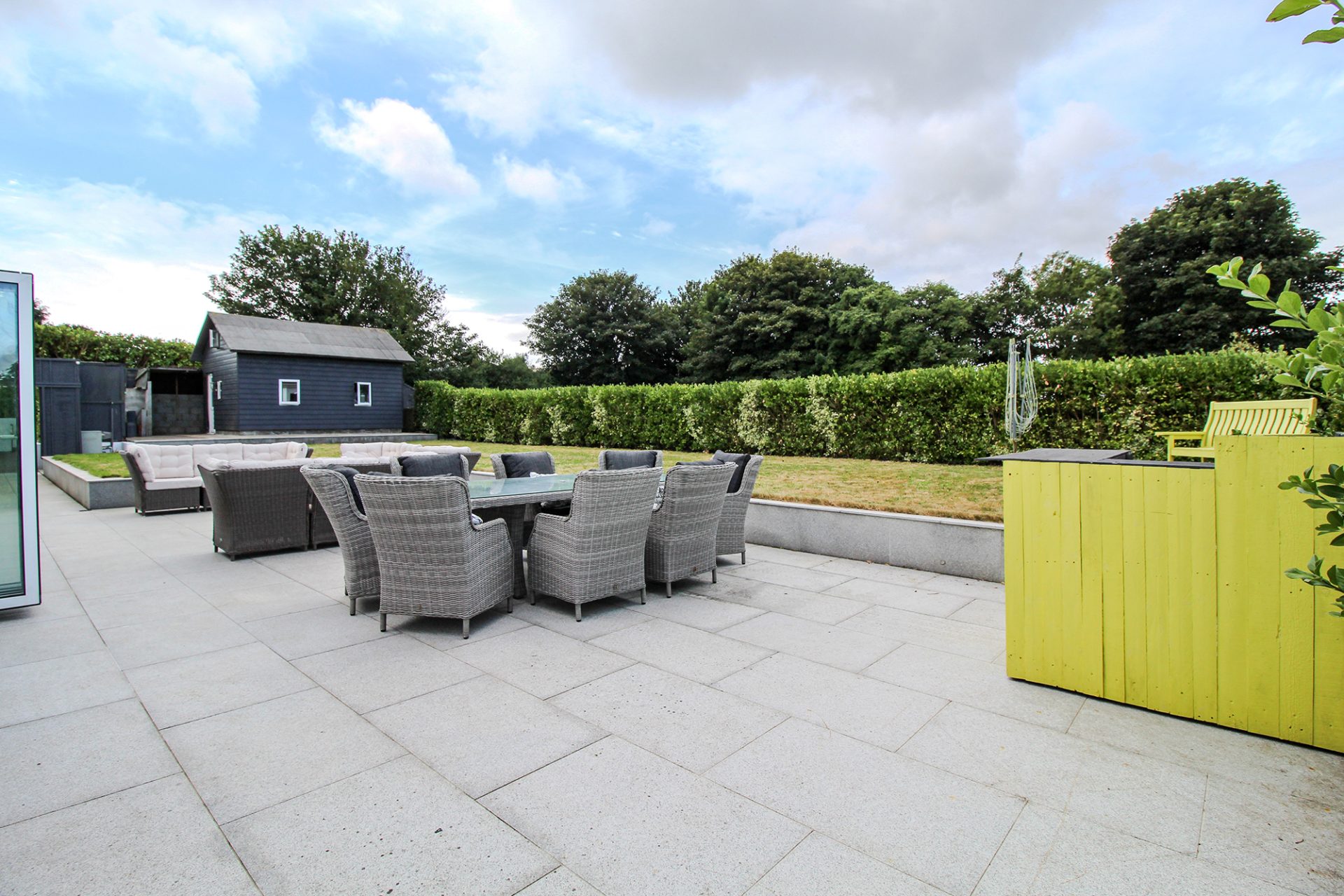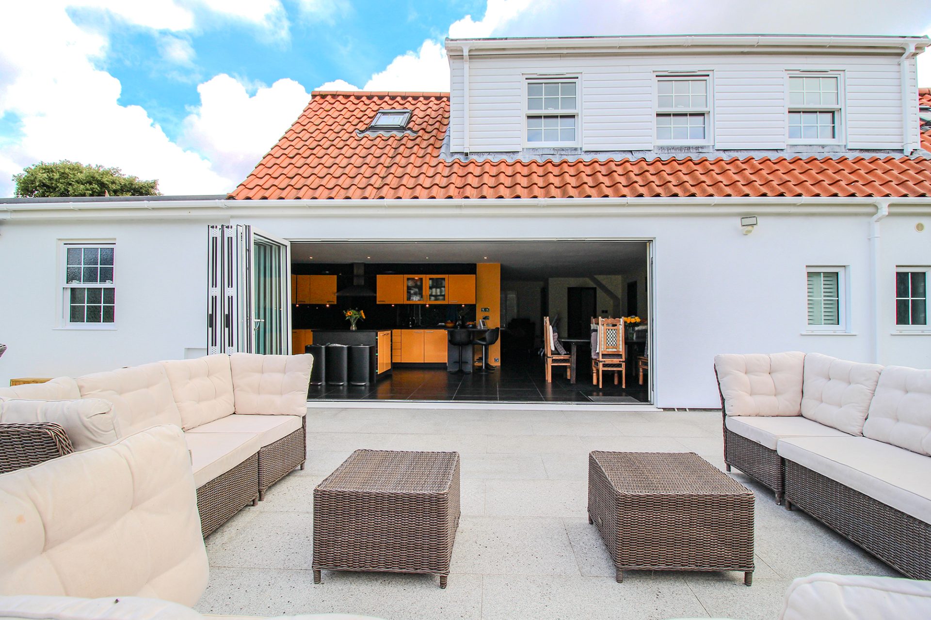 Bifold doors open onto a large west facing patio and garden, perfect for indoor outdoor living. To the side, there is ample private parking, adding to the convenience of this lovely home.