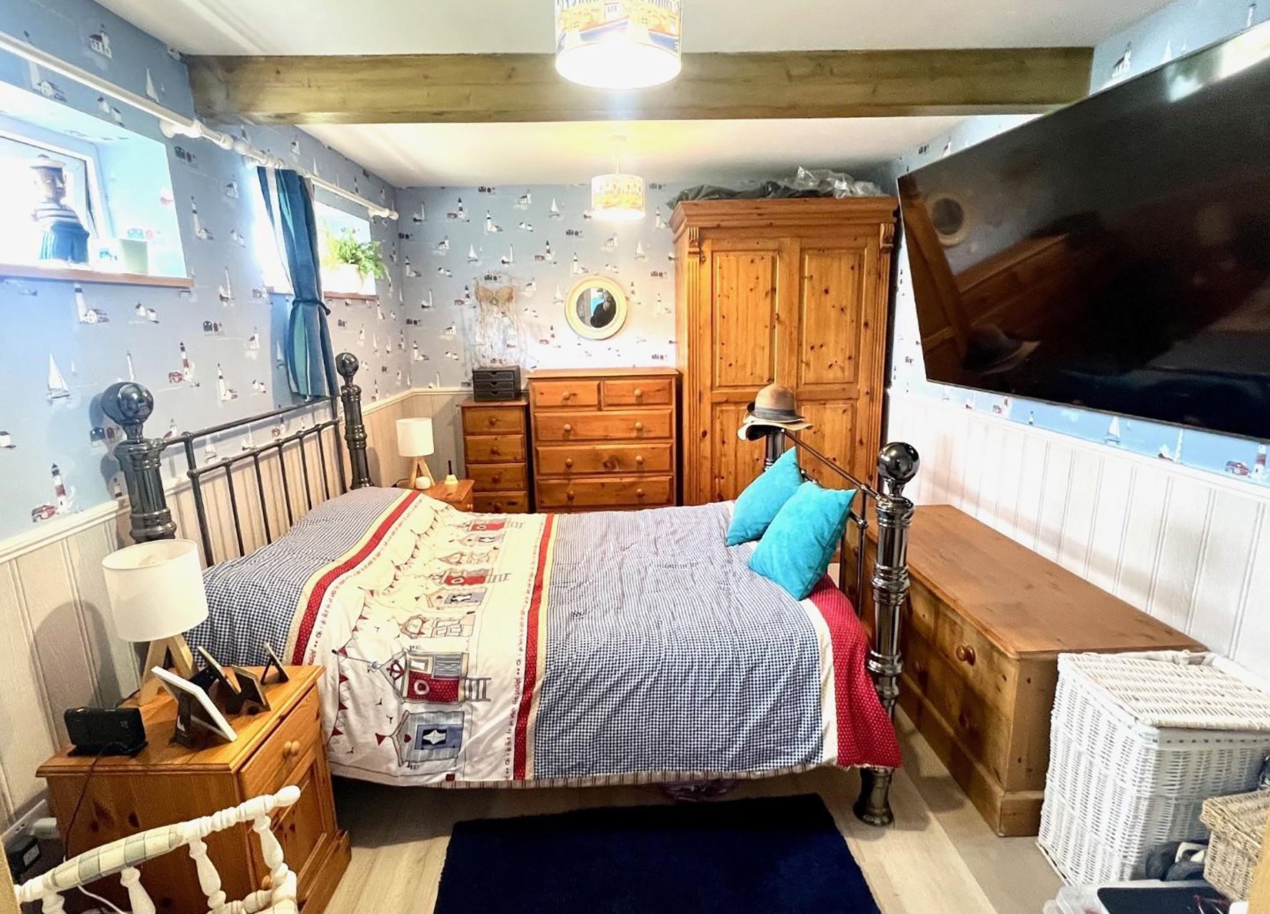The ground floor comprises a double bedroom, a smaller single bedroom, a superbly refurbished bathroom, a utility room with a washing machine and tumble dryer, and an additional versatile room with its own separate entrance, ideal as a home office or guest accommodation.