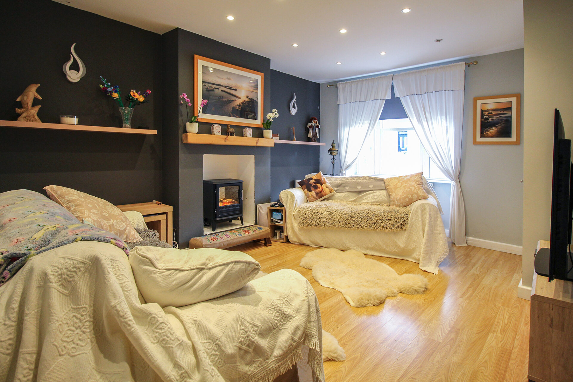 Set back from the road in a peaceful location, the property offers well-proportioned living spaces with a newly fitted kitchen and family bathroom on the ground floor and two good sized bedrooms complimented by an en-suite shower room on the first floor. The rear garden is fully enclosed with a patio and lawned area, perfect for relaxing or entertaining.