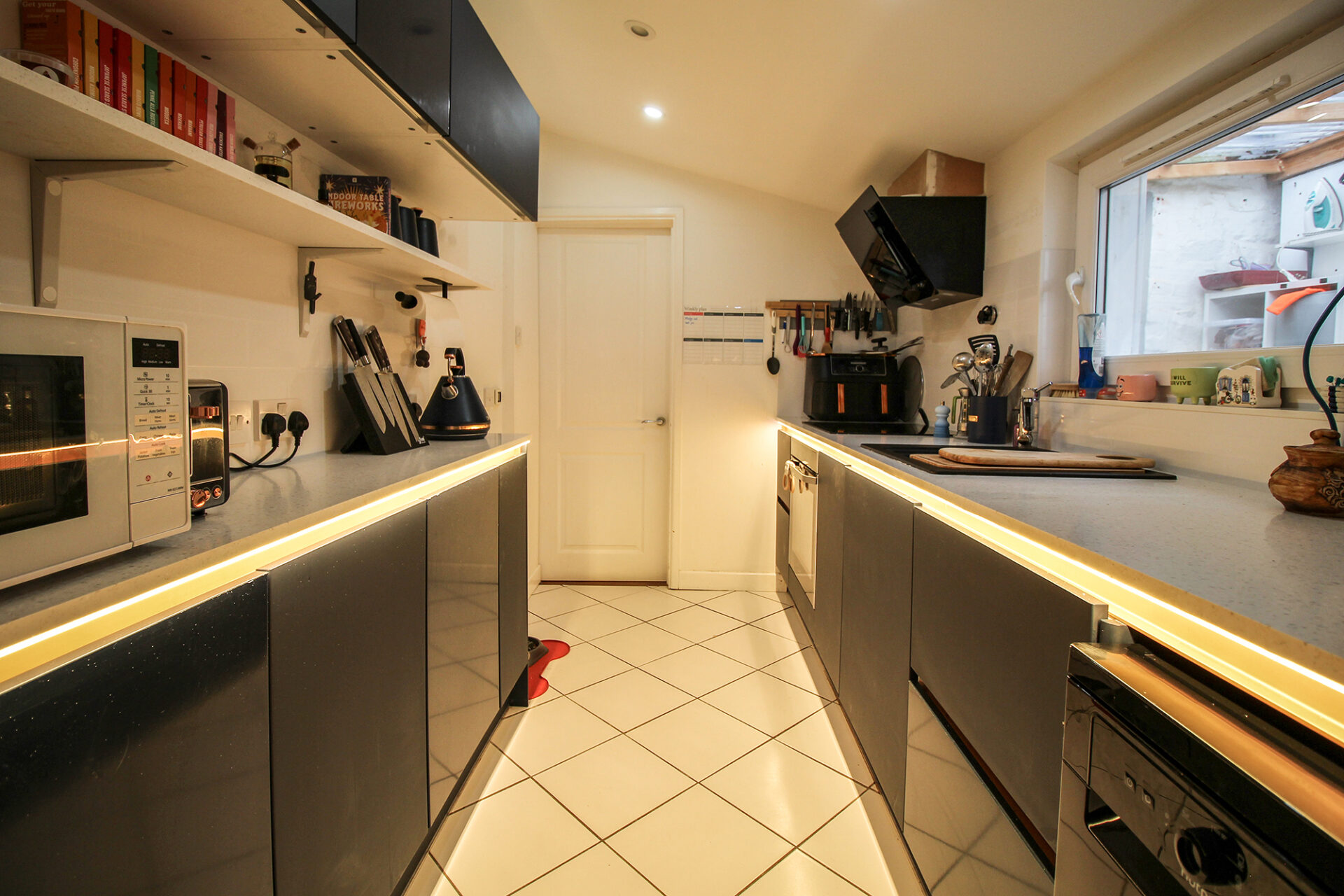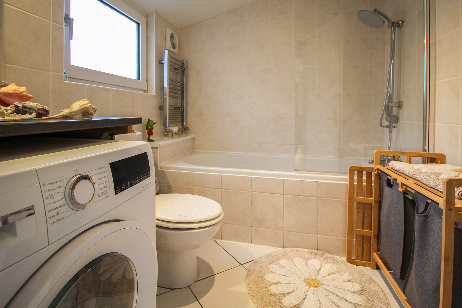 Externally, the brick-paved driveway provides parking for at least one car (or two smaller vehicles), with additional on-street parking nearby and the option to rent a parking space at the park if required.
