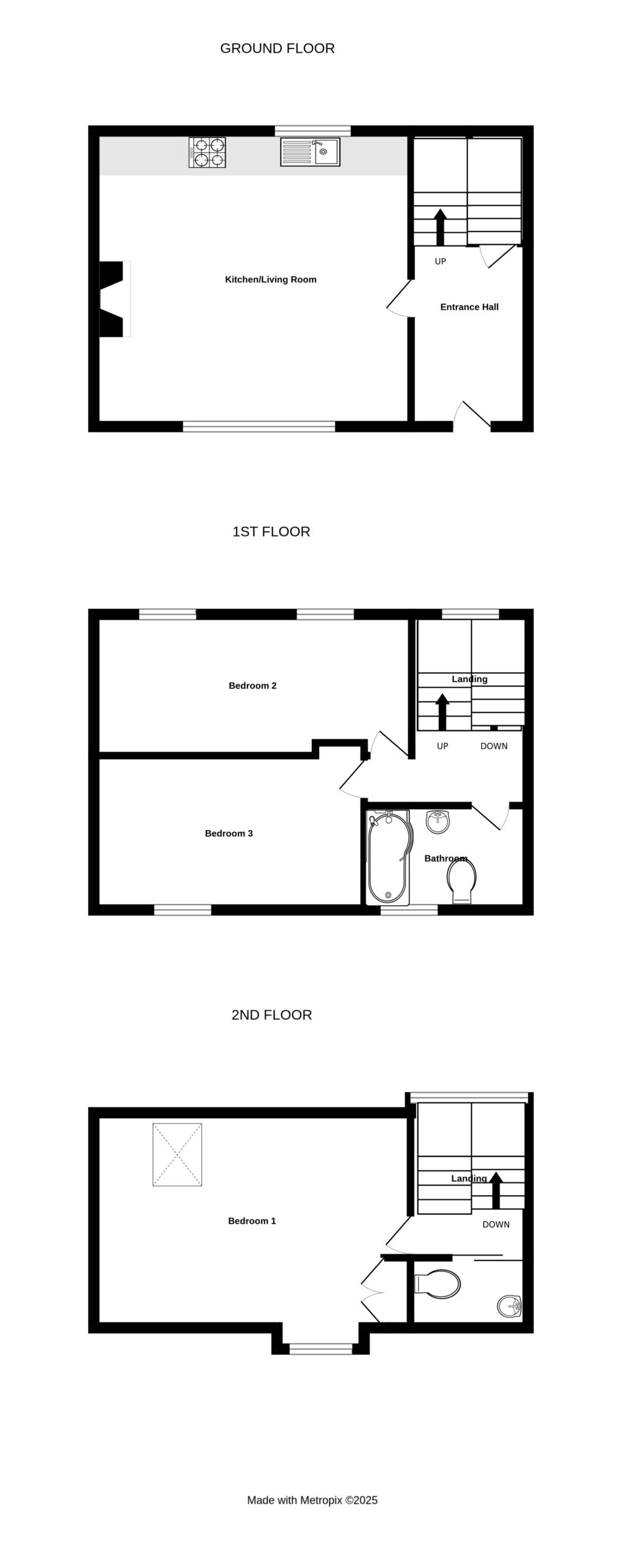 The bright and airy accommodation comprises an open plan kitchen living room and three bedrooms which are serviced by a family bathroom and separate WC. The property is surrounded by on street parking options and further benefits from a shared courtyard garden.
