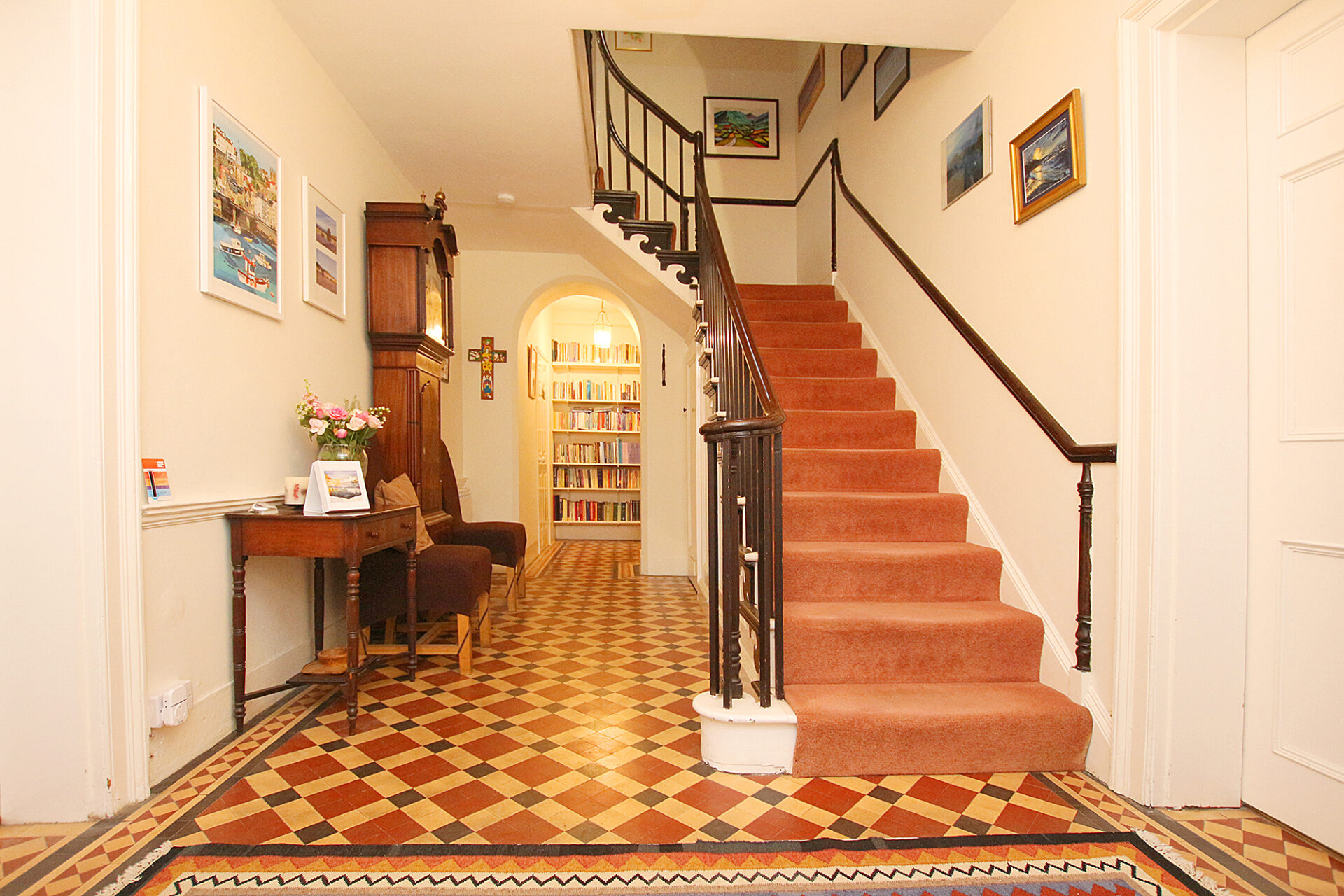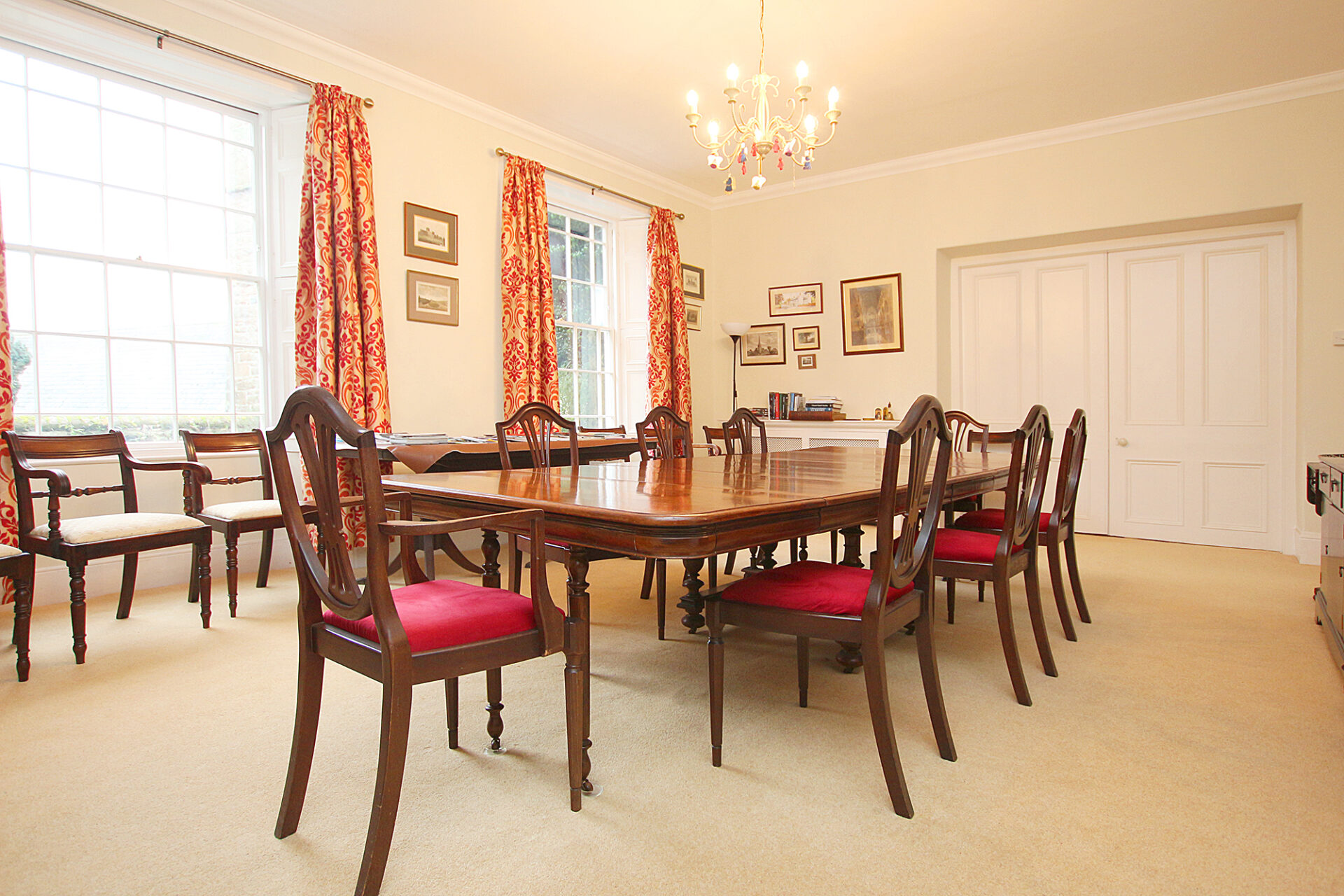 The home features large reception rooms, each enjoying high ceilings and plenty of natural light through the large windows, some of which frame views across to the Parish Church.
