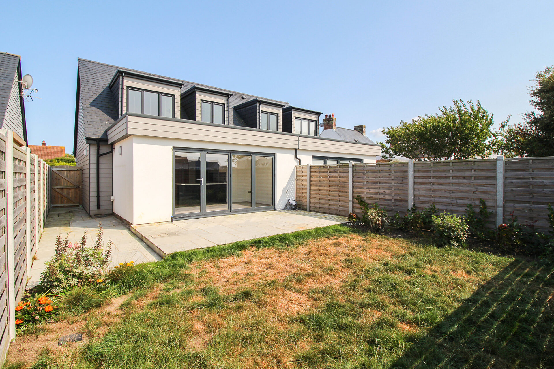 Bright and spacious throughout, the accommodation comprises three bedrooms which are serviced by two bath/shower rooms. A highlight is the beautiful open plan kitchen living space which opens out to a west facing patio and garden area.