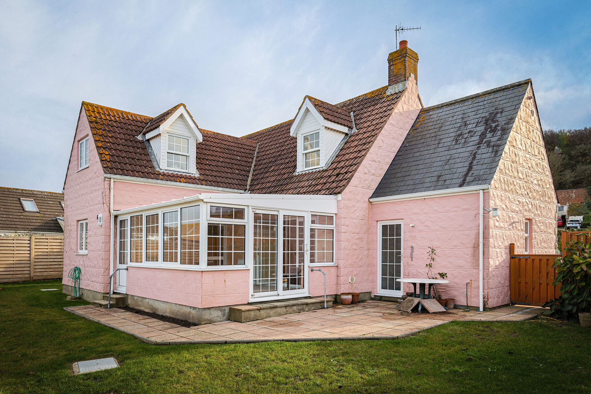 Built in 1991, this attractive detached chalet bungalow occupies a peaceful position within a small clos of just four homes, tucked away along a sheltered rural lane a short distance from Rocquaine Bay.