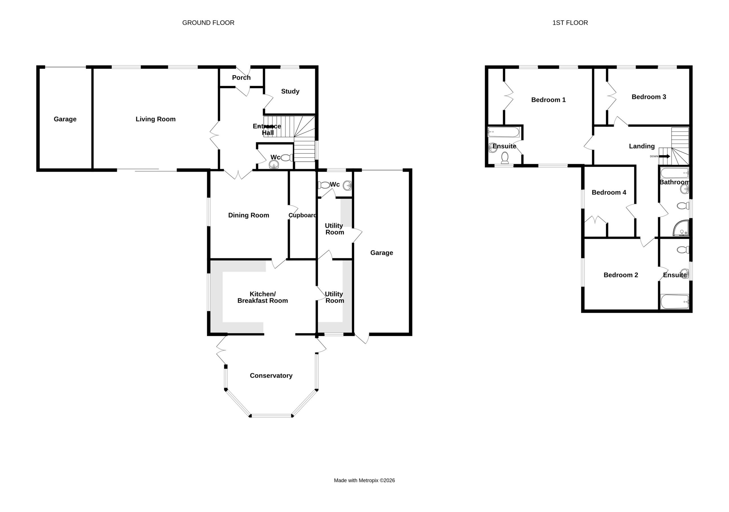 The ample living space incorporates a lounge, dining room, study, kitchen/ breakfast room and conservatory. Four well-proportioned bedrooms include two en-suites, together with a family bathroom and the additional benefit of two separate WCs.