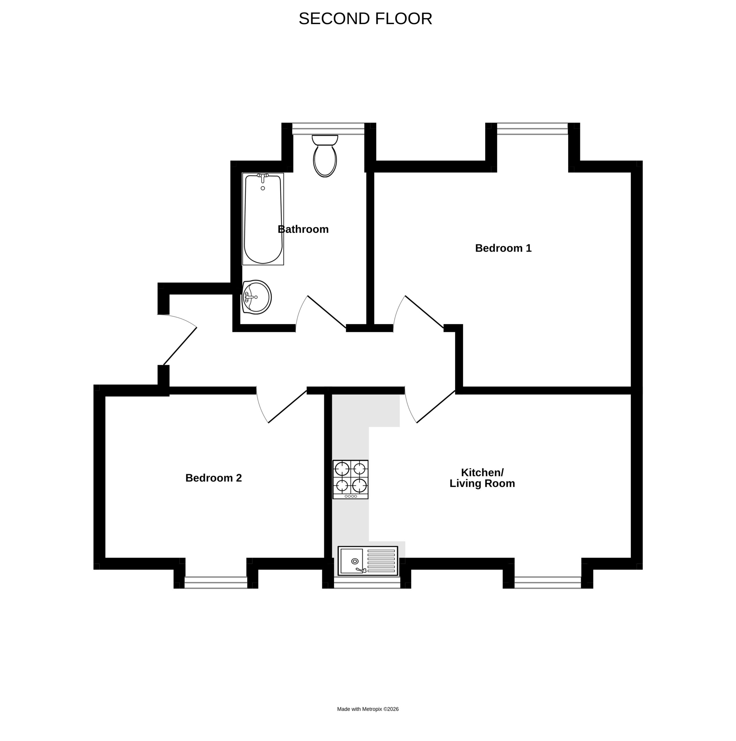 The accommodation comprises an open plan kitchen/living area, bathroom and two bedrooms. 6, Millmount further benefits from an allocated parking space and is positioned within convenient distance from the main amenities of St Peter Port.