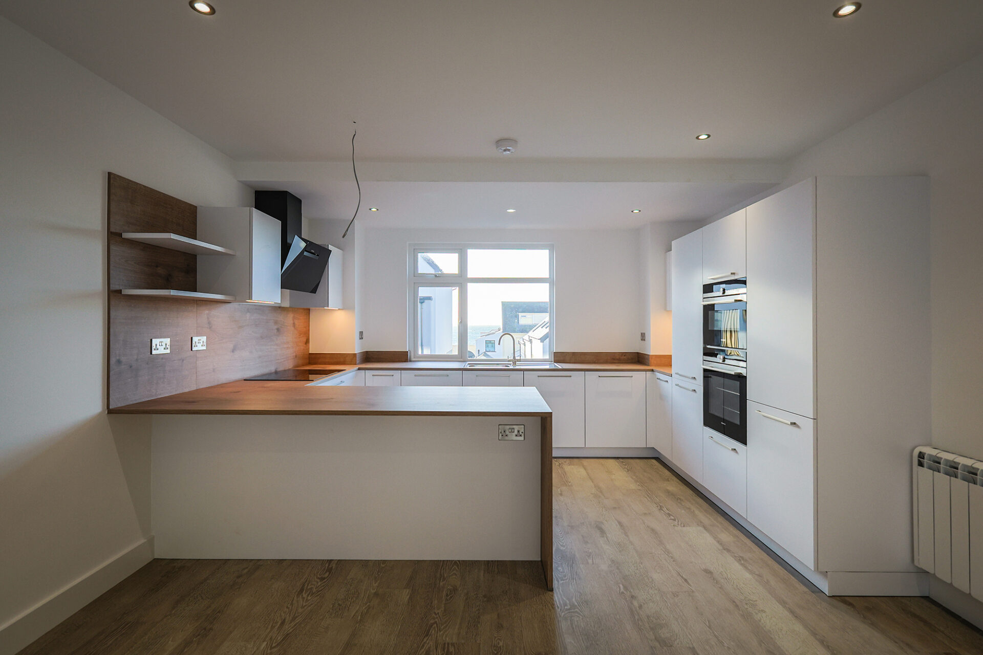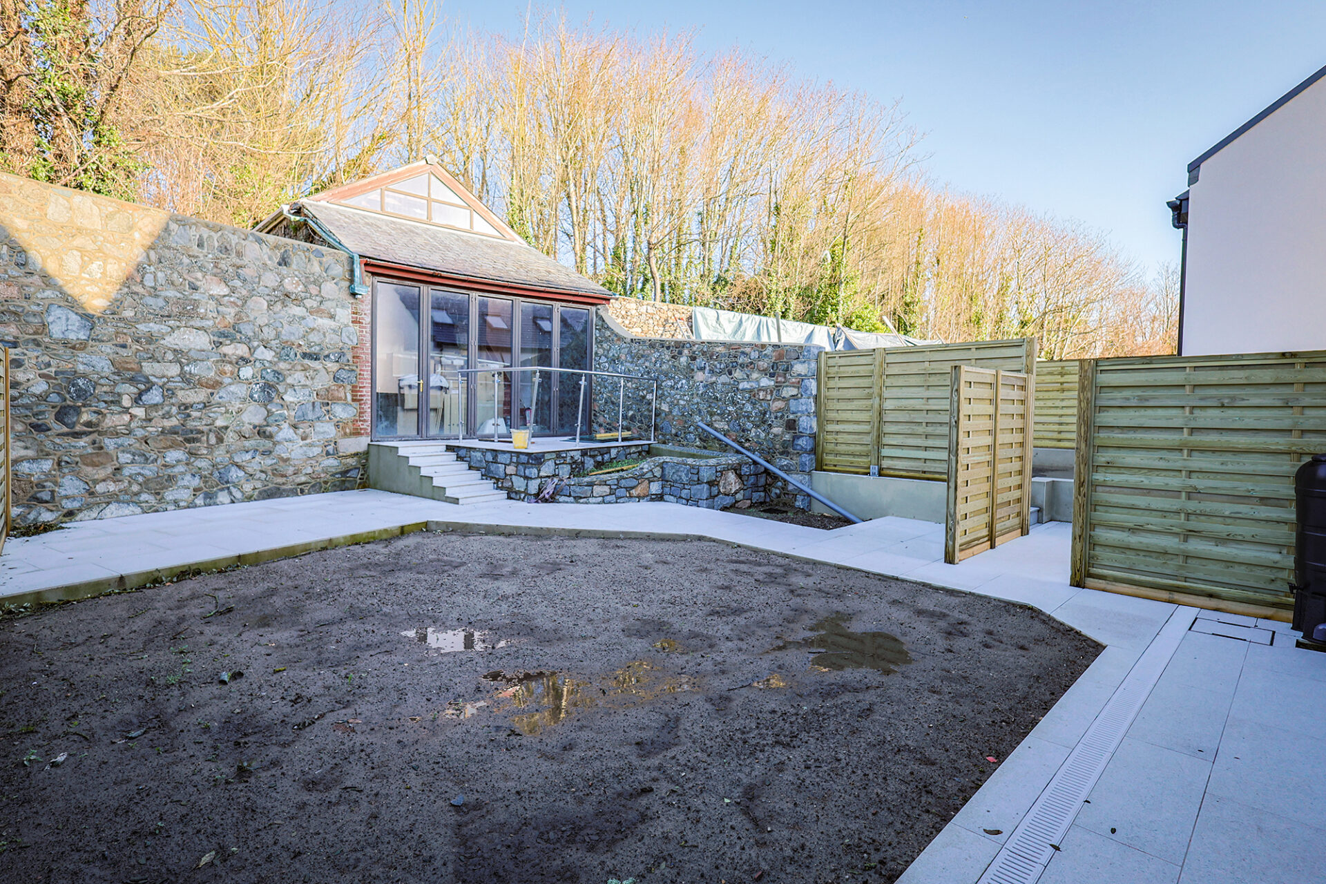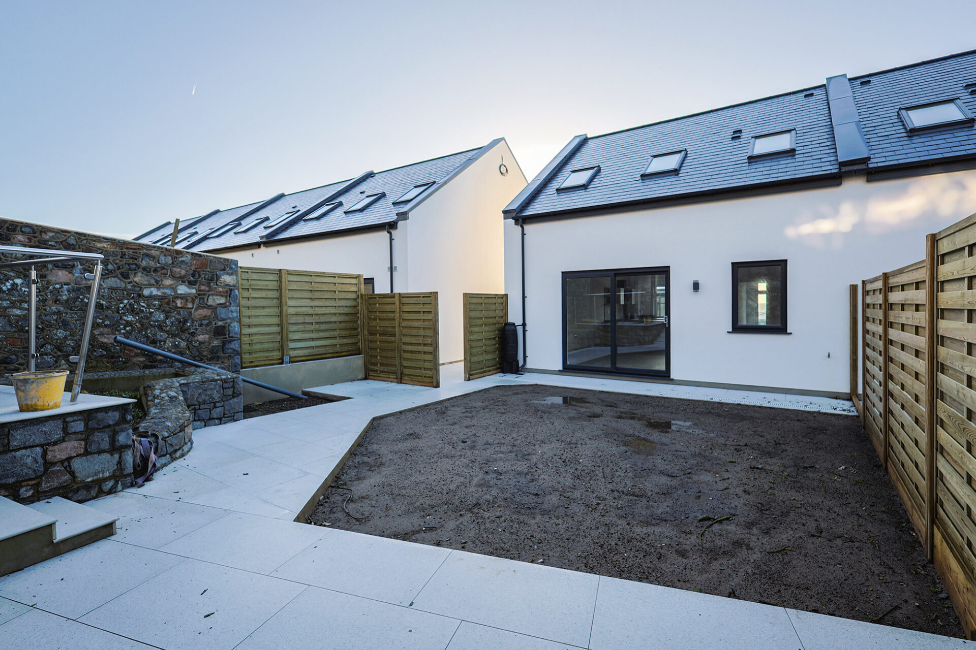 Recently built by a respected local developer, this stylish, contemporary semi-detached home comprises three generously sized bedrooms; main bedroom en-suite on the ground floor with two further bedrooms on the second floor, one of which benefits from a balcony with sea views. An open-plan kitchen and living area, separate WC, study and a practical utility room complete the offering. Each unit is further enhanced with allocated parking for two, communal bike storage and private patios and gardens, offering the perfect blend of convenience and modern living.