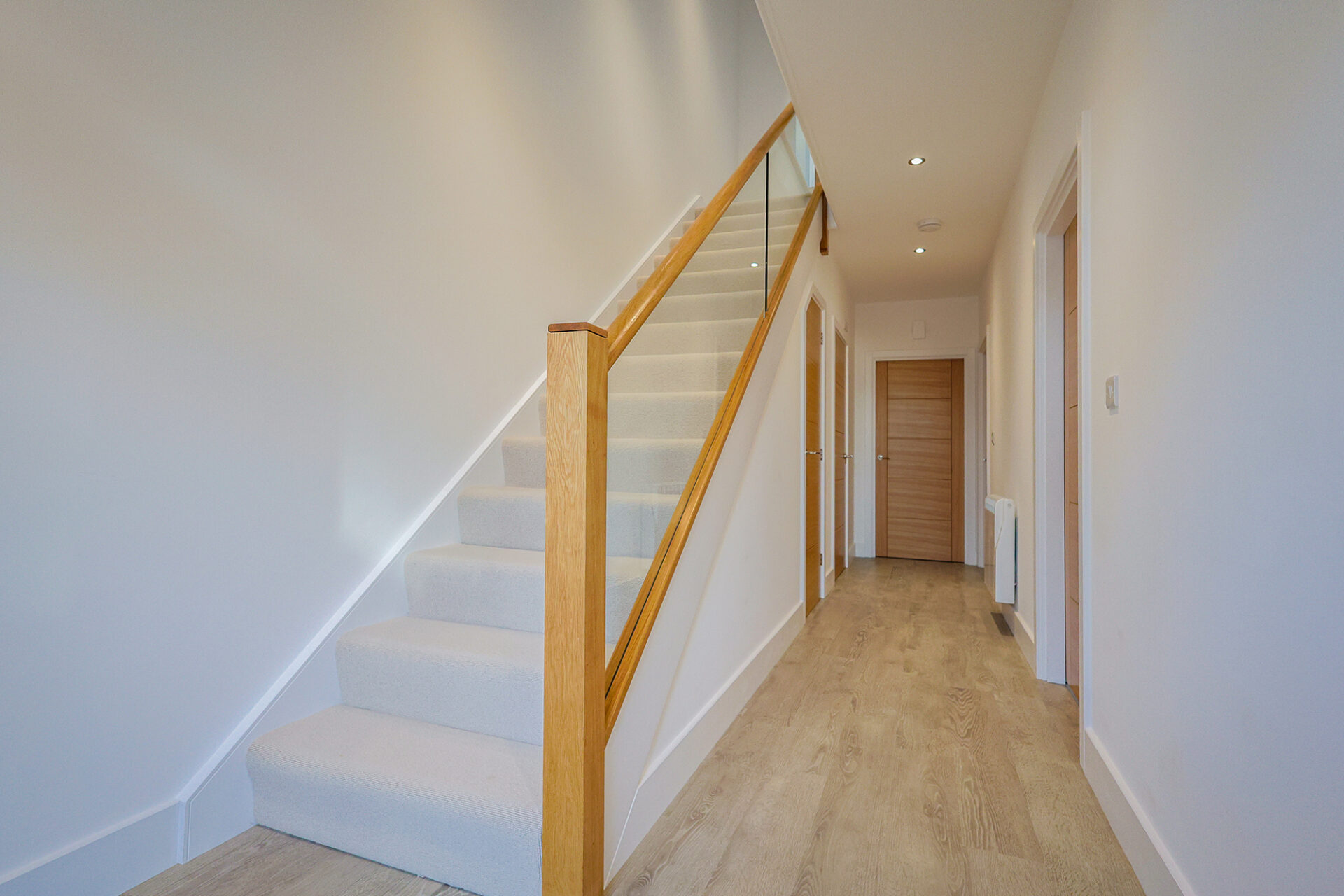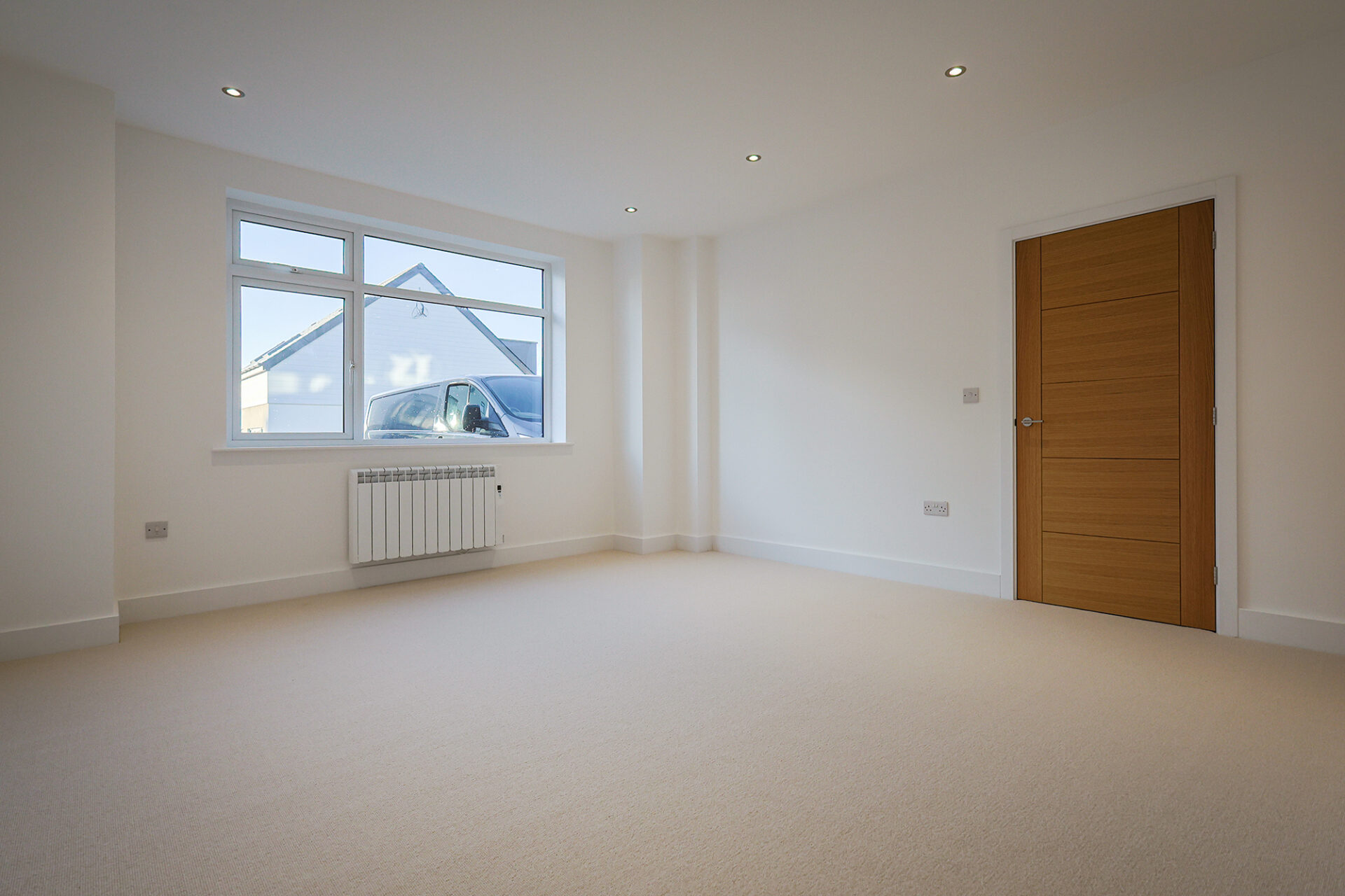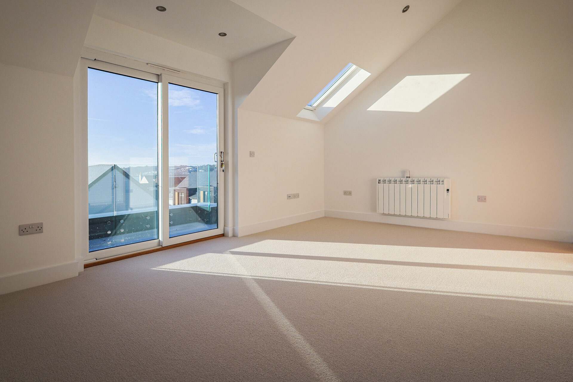 Recently built by a respected local developer, this stylish, contemporary semi-detached home comprises three generously sized bedrooms; main bedroom en-suite on the ground floor with two further bedrooms on the second floor, one of which benefits from a balcony with sea views. An open-plan kitchen and living area, separate WC, study and a practical utility room complete the offering. Each unit is further enhanced with allocated parking for two, communal bike storage and private patios and gardens, offering the perfect blend of convenience and modern living.