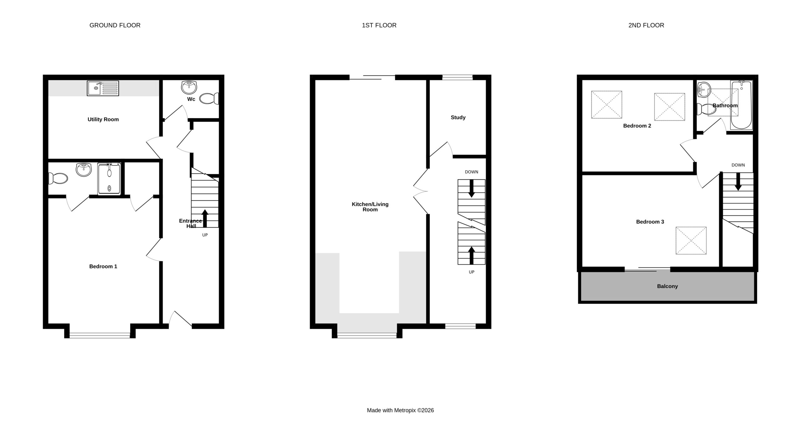 An open-plan kitchen and living area, separate WC, study and a practical utility room complete the offering. Each unit is further enhanced with allocated parking for two, communal bike storage and private patios and gardens, offering the perfect blend of convenience and modern living.