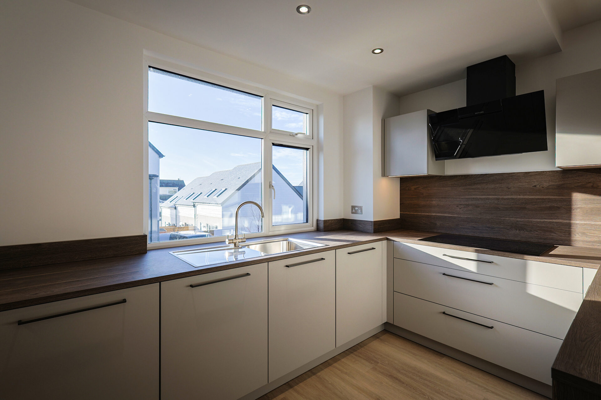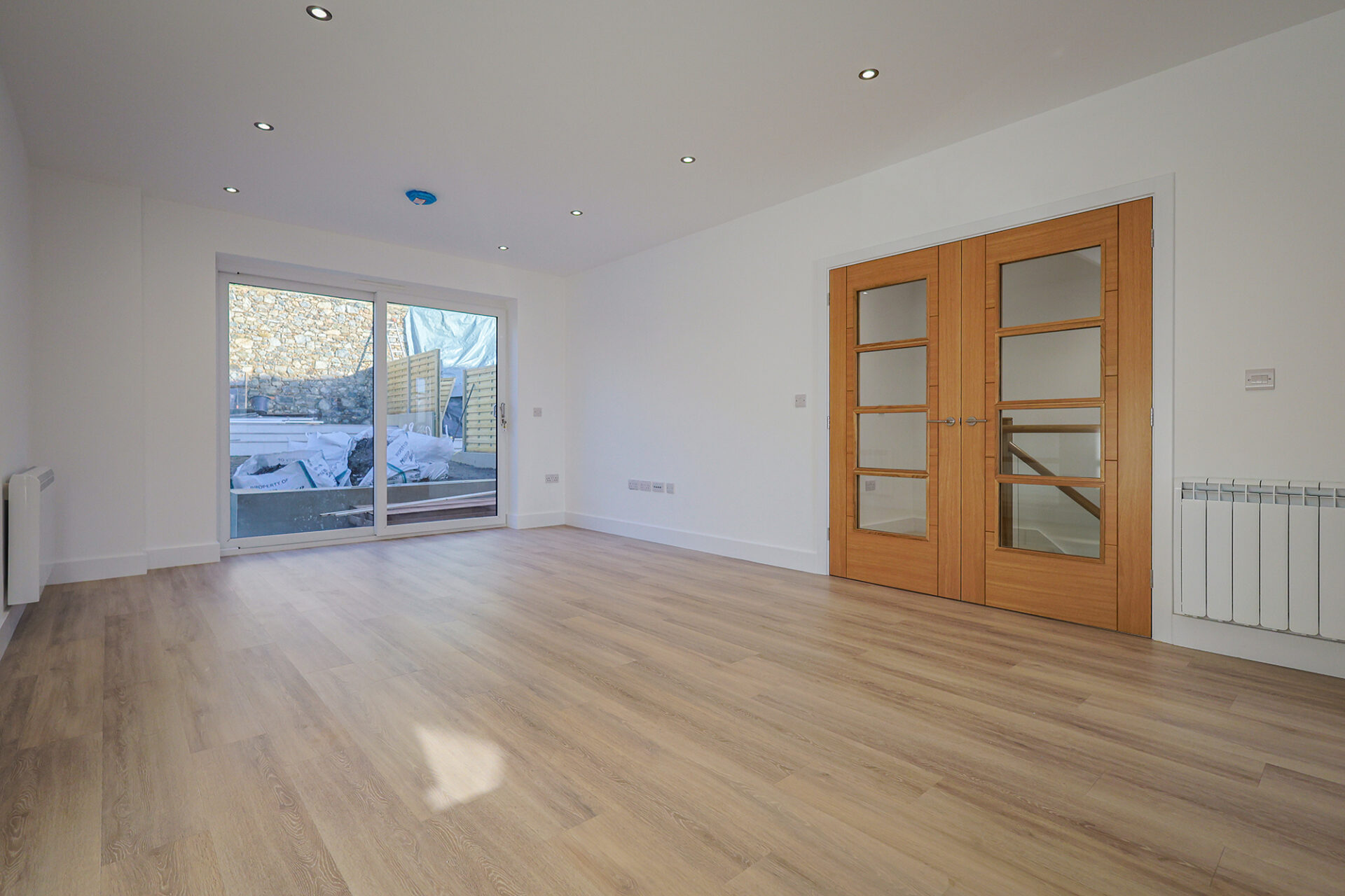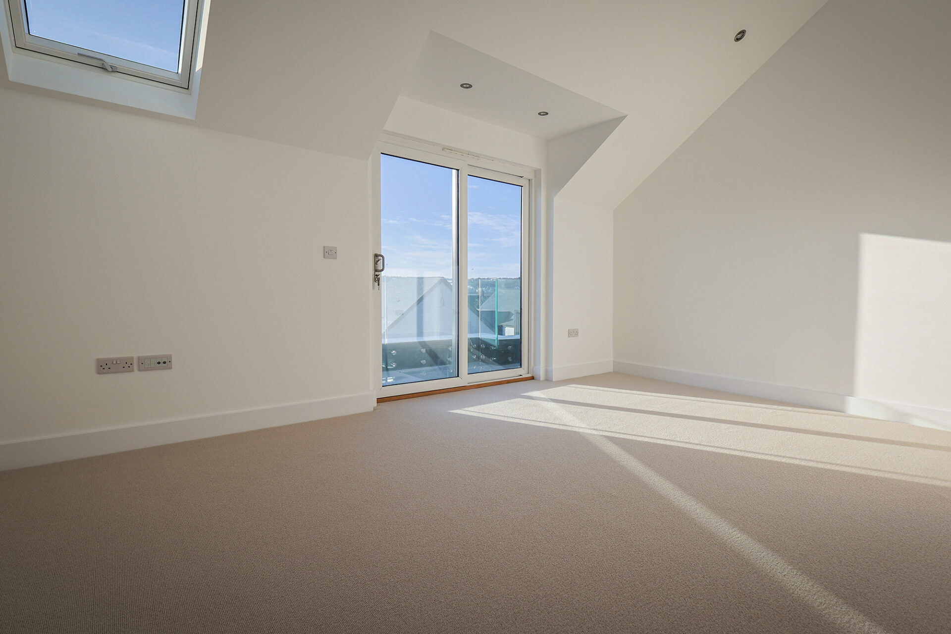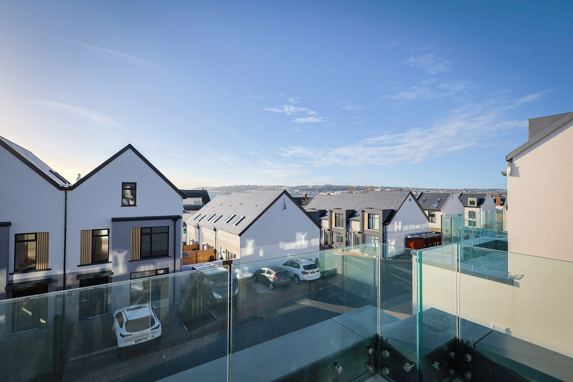 Recently built by a respected local developer, this stylish, contemporary semi-detached home comprises three generously sized bedrooms; main bedroom en-suite on the ground floor with two further bedrooms on the second floor, one of which benefits from a balcony with sea views.