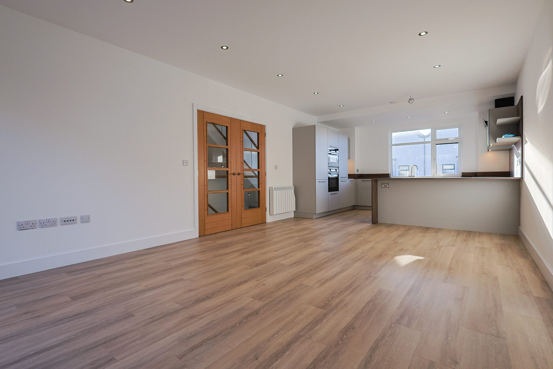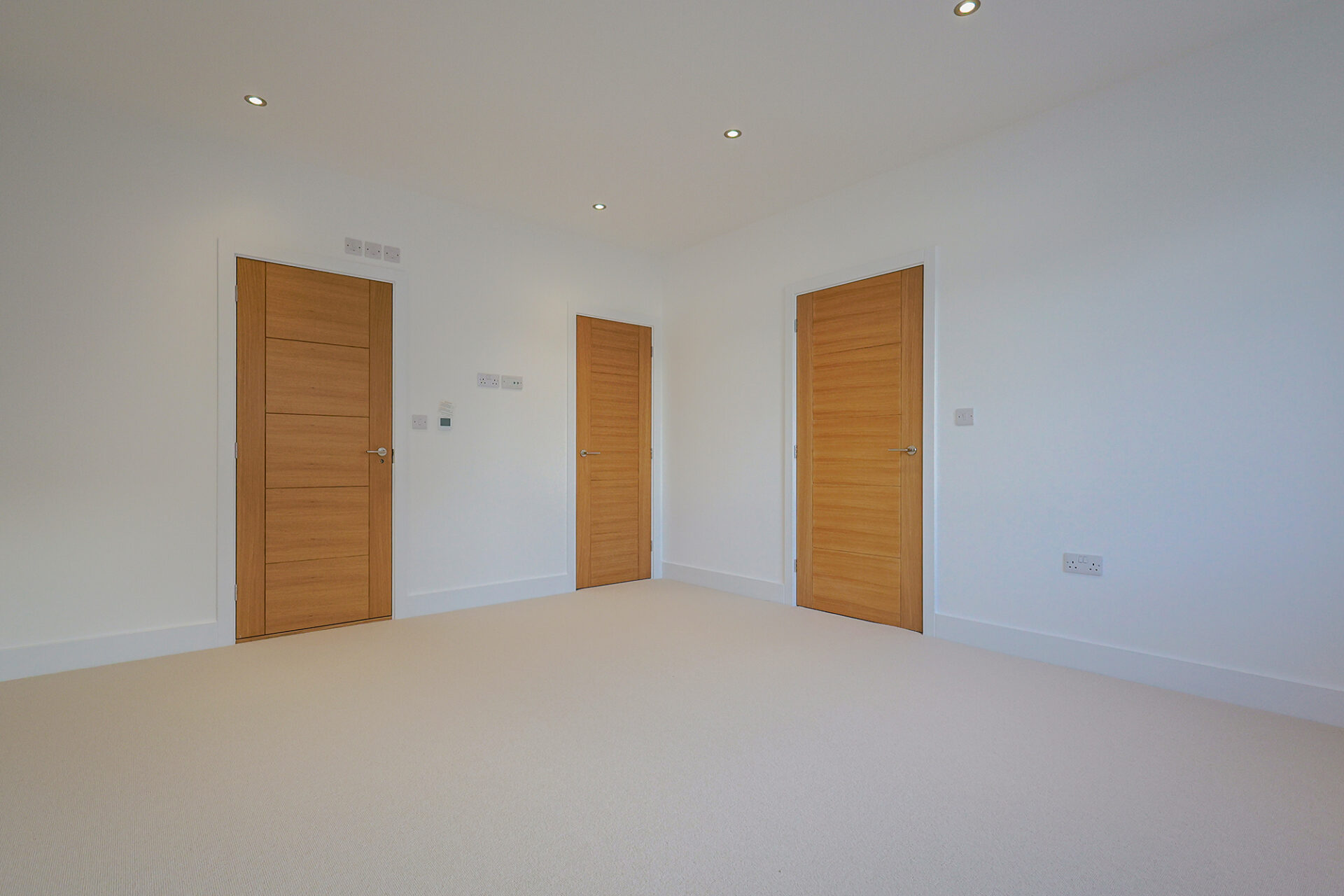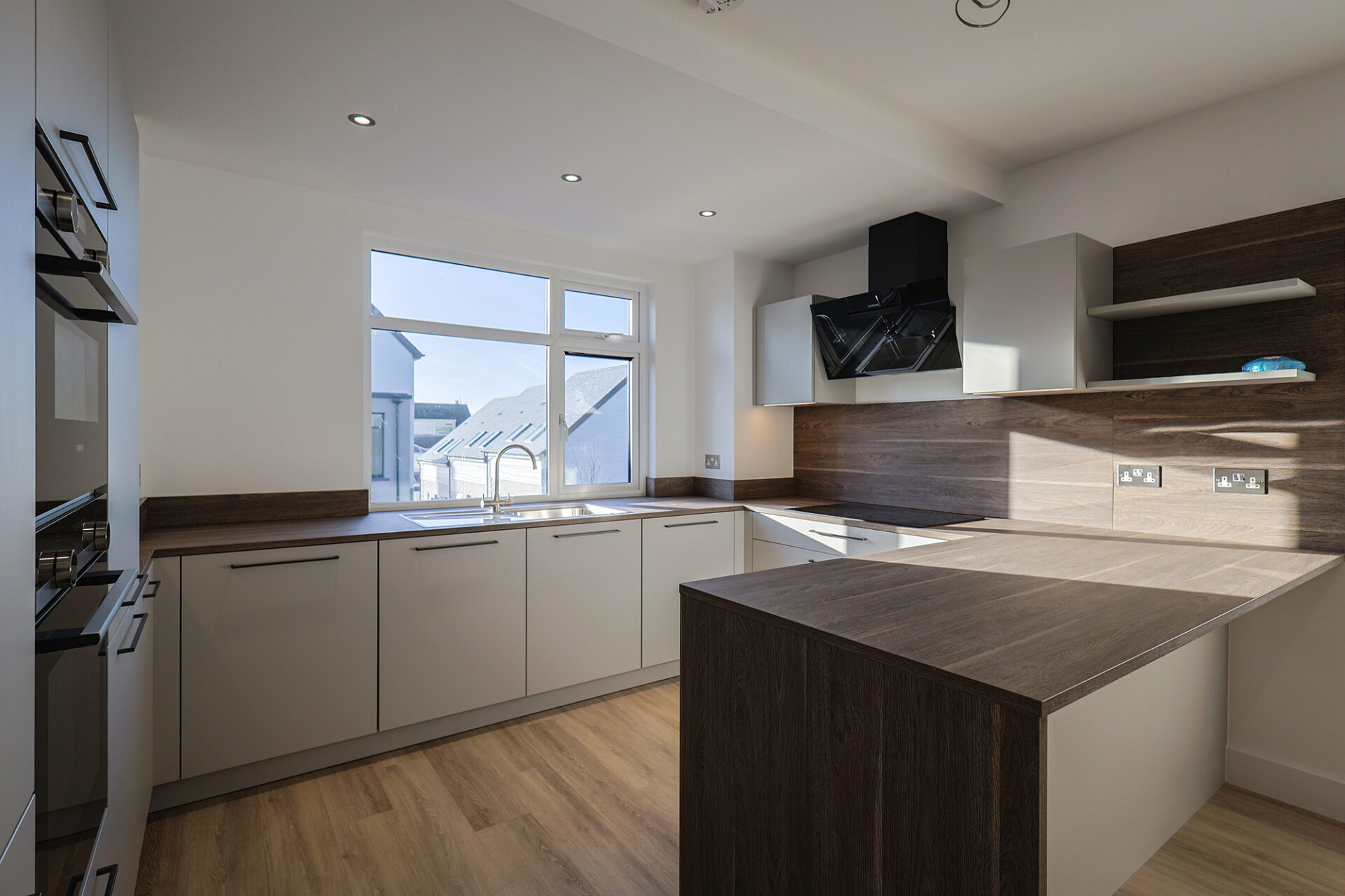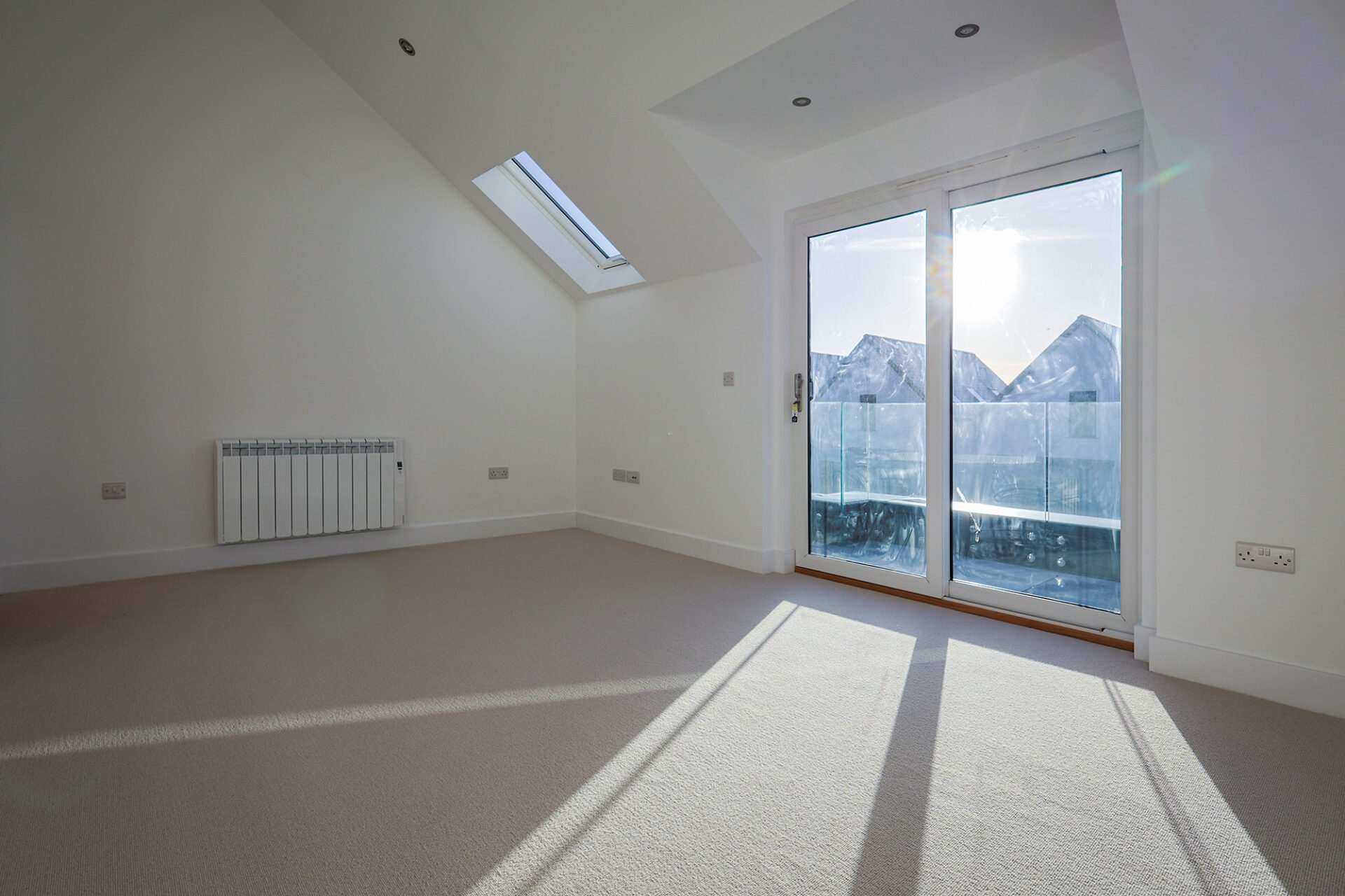 Recently built by a respected local developer, this stylish, contemporary semi-detached home comprises three generously sized bedrooms; main bedroom en-suite on the ground floor with two further bedrooms on the second floor, one of which benefits from a balcony with sea views.