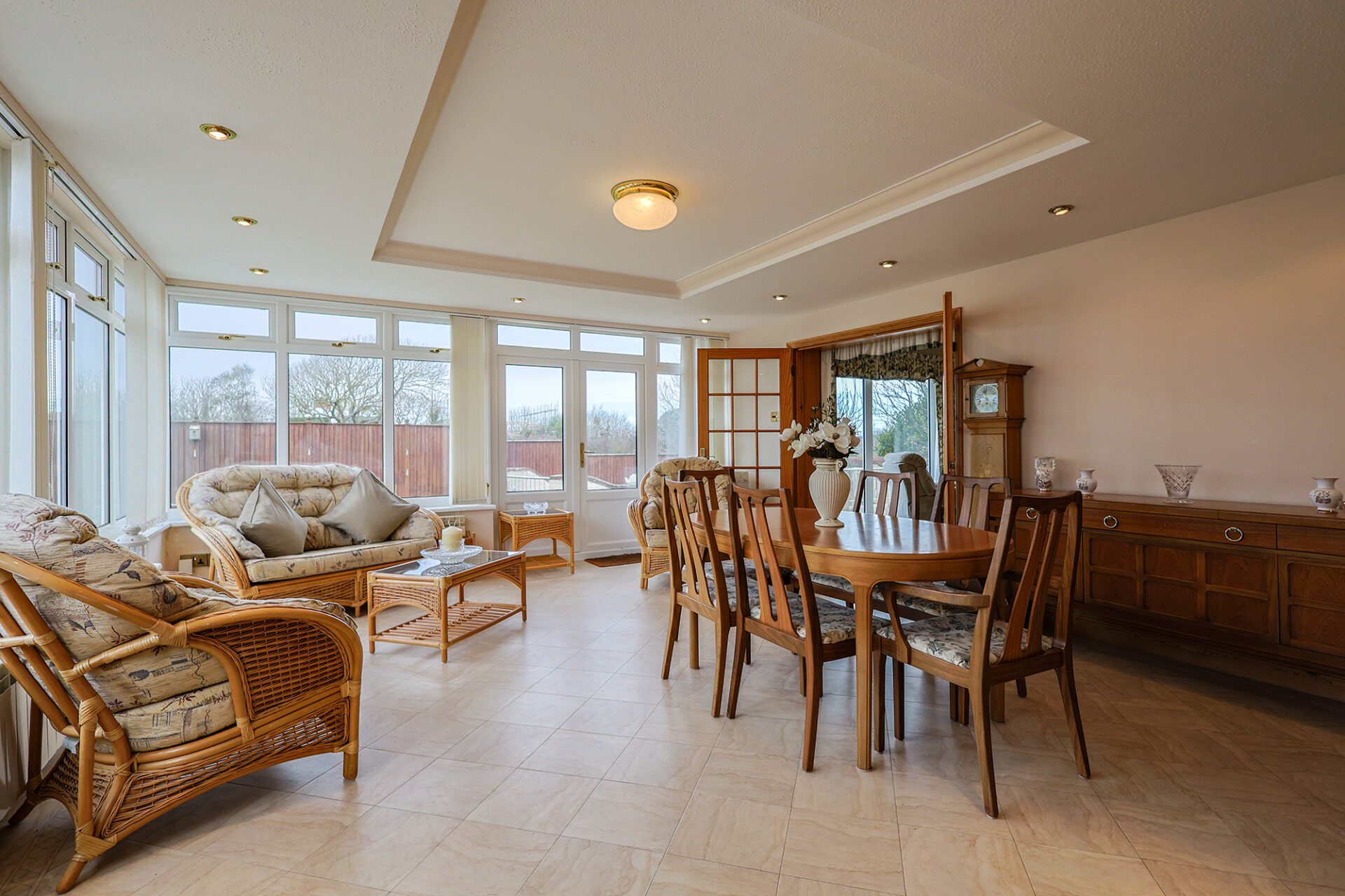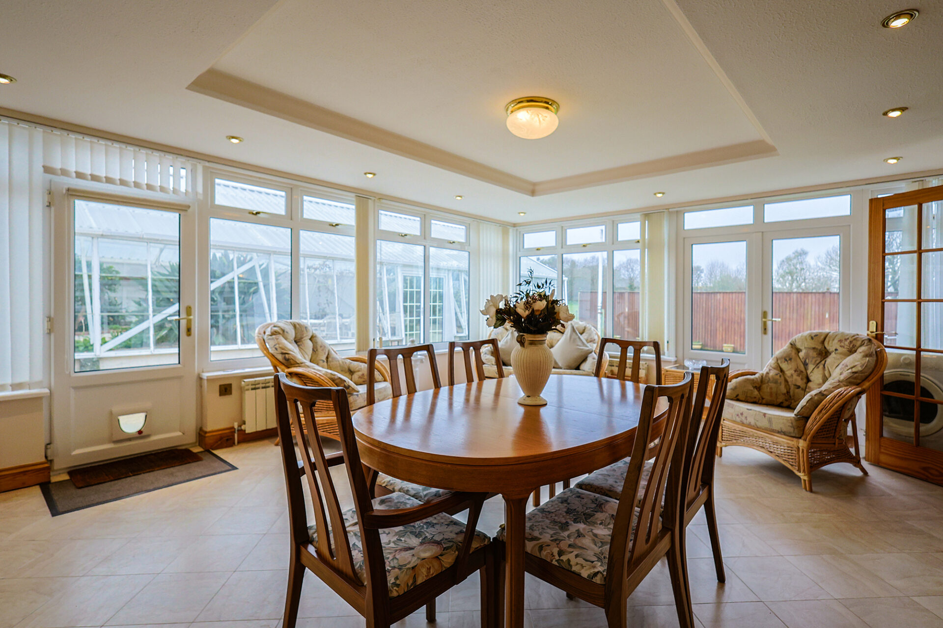 It features a fabulous greenhouse with ample space for entertaining throughout the year. The beautifully kept south and west facing gardens, generous parking, shed, and large workshop further enhance this charming home.