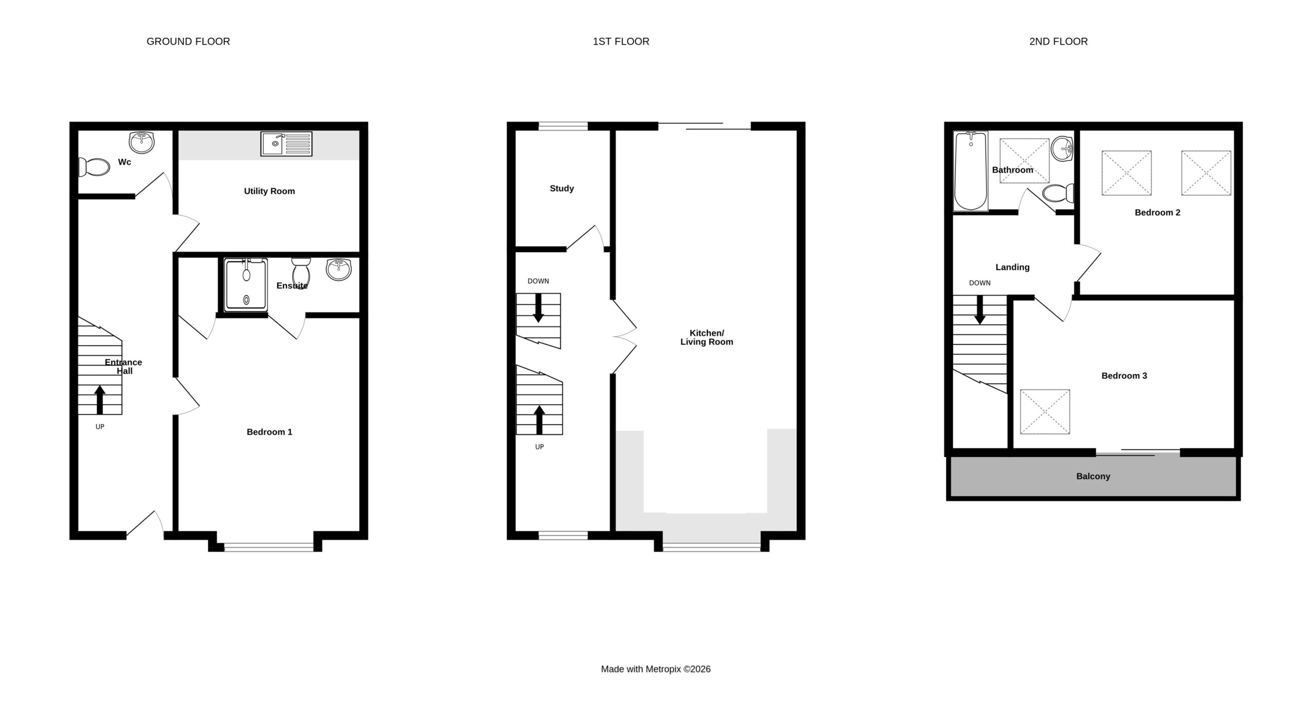 Recently built by a respected local developer, this stylish, contemporary semi-detached home comprises three generously sized bedrooms; main bedroom en-suite on the ground floor with two further bedrooms on the second floor, one of which benefits from a balcony with sea views. An open-plan kitchen and living area, separate WC, study and a practical utility room complete the offering. Each unit is further enhanced with allocated parking for two, communal bike storage and private patios and gardens, offering the perfect blend of convenience and modern living.