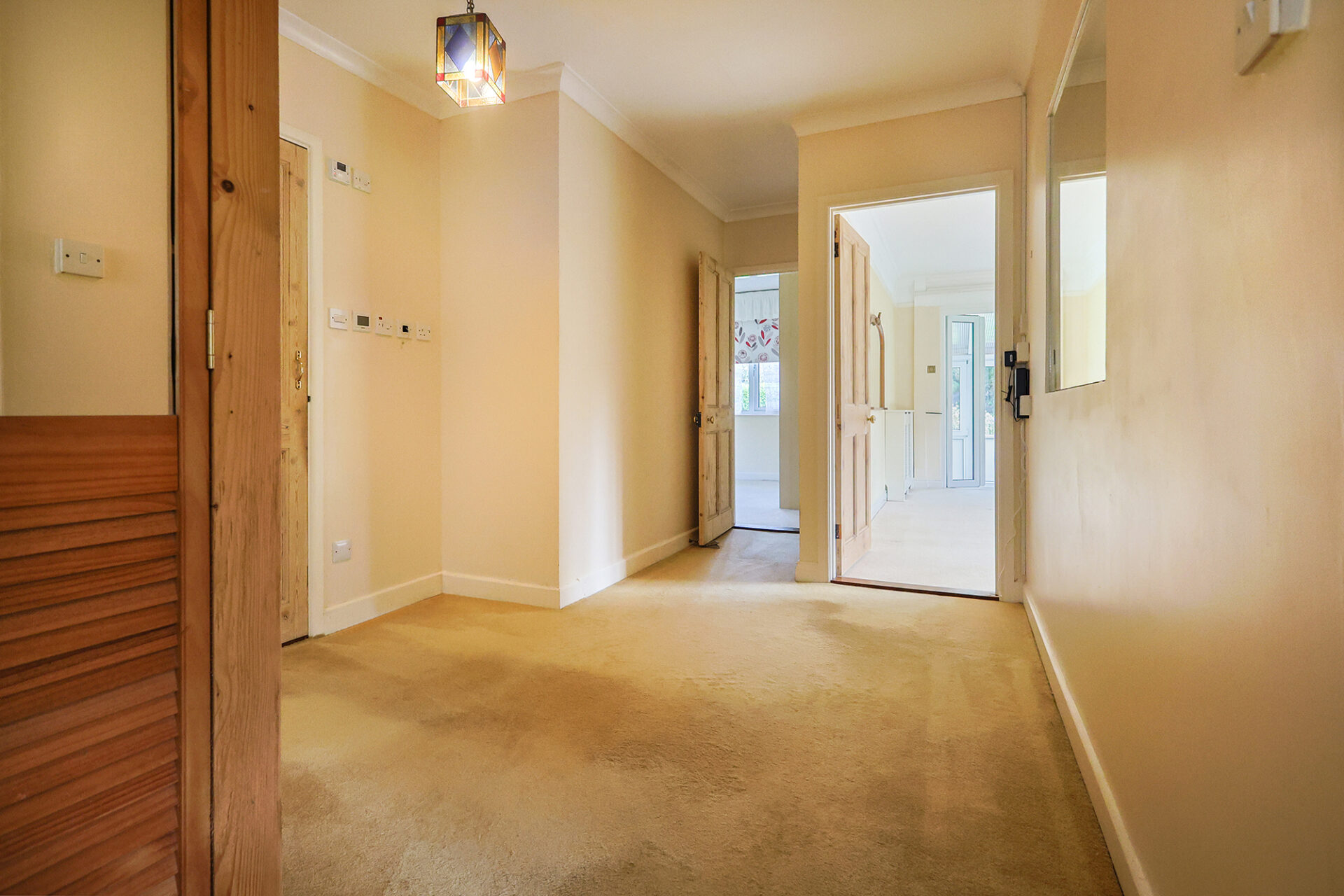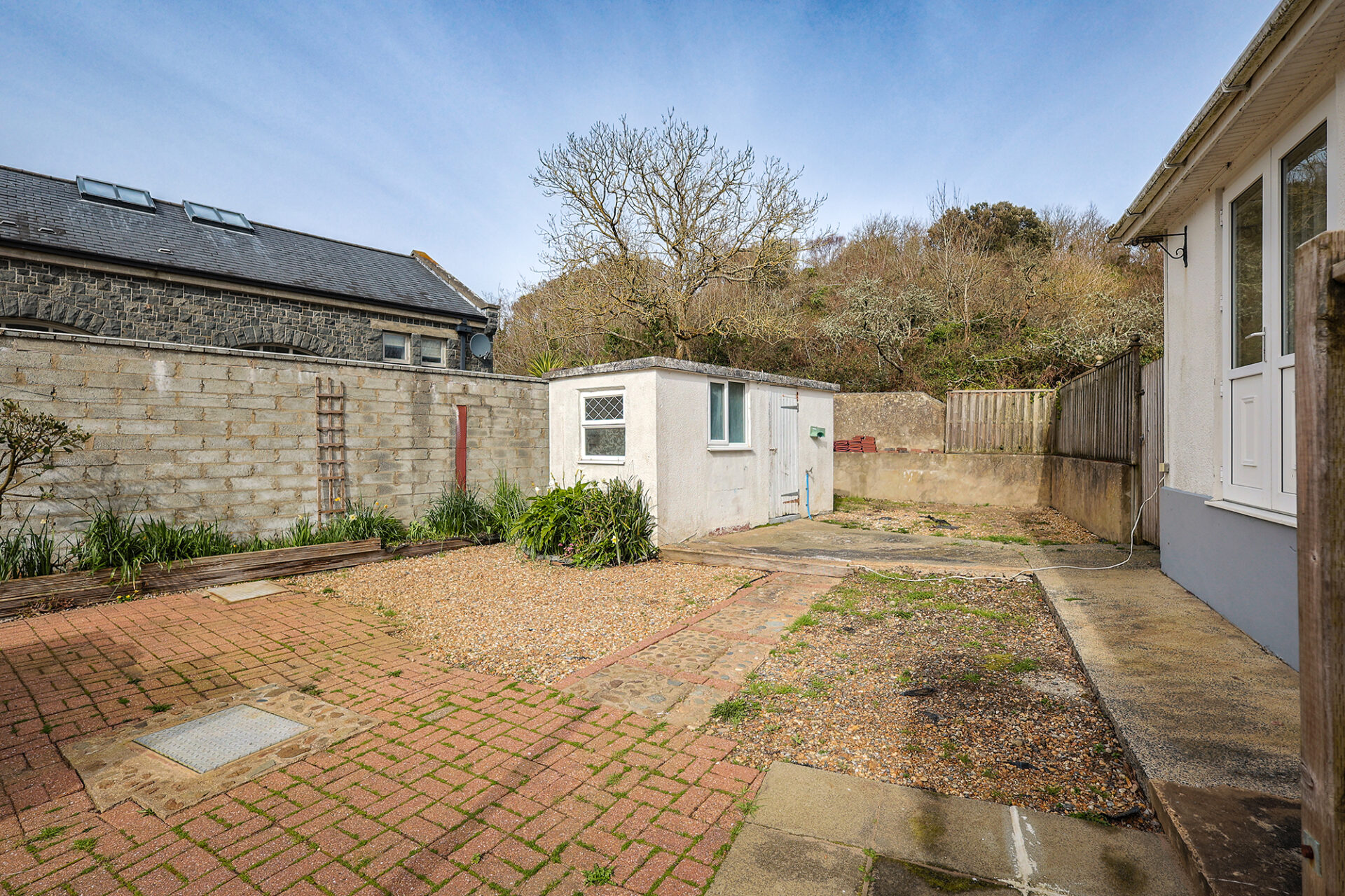 Externally the gardens wrap around the house and are mainly laid to lawn with mature shrubs and hedging, to one side is a paved and gravelled area housing a useful outbuilding and ample parking is provided on the brick paved driveway.