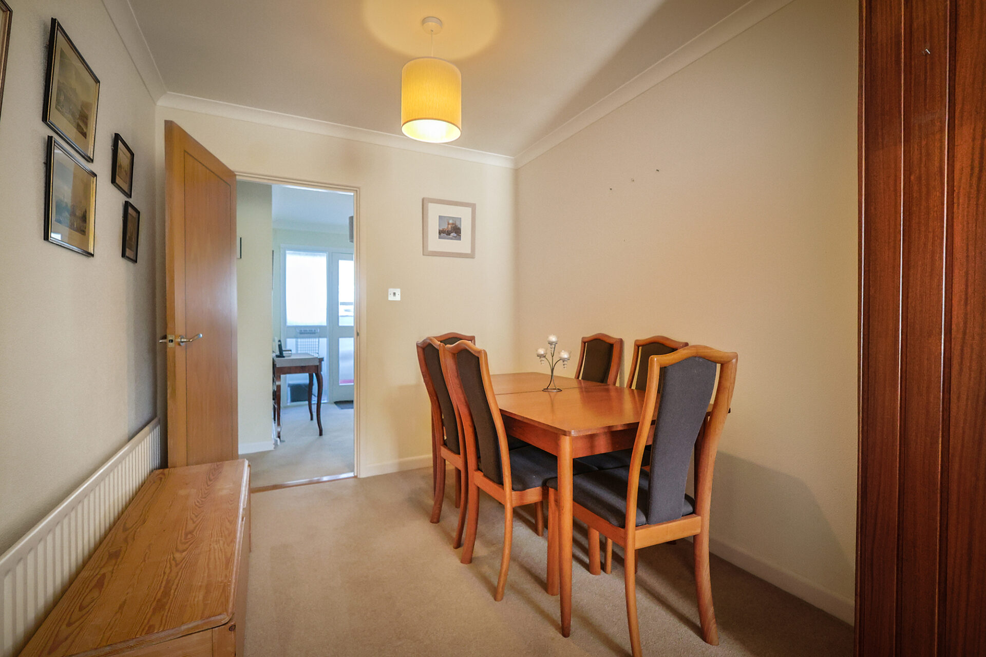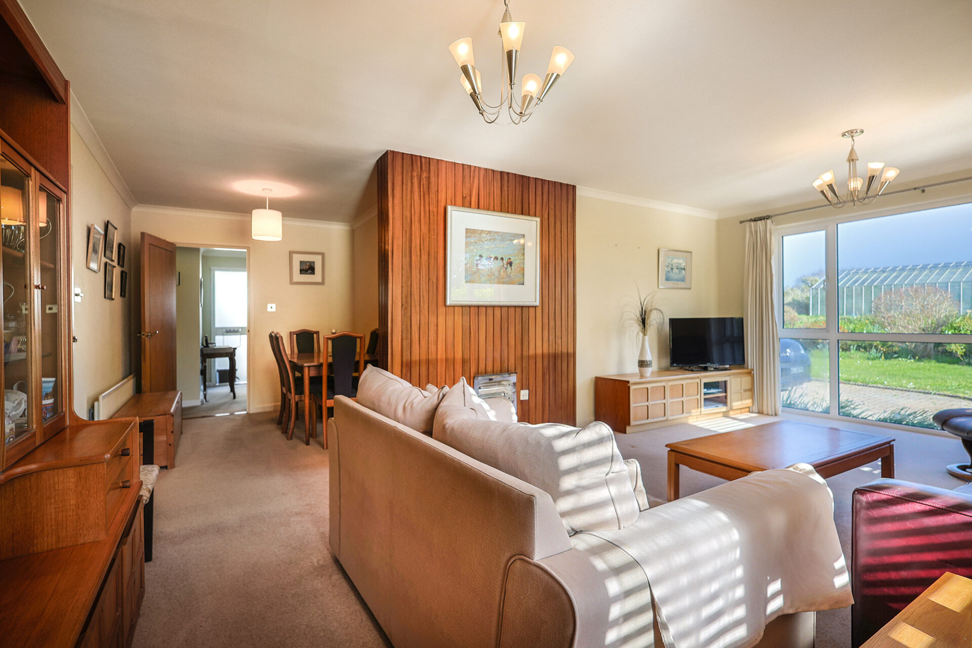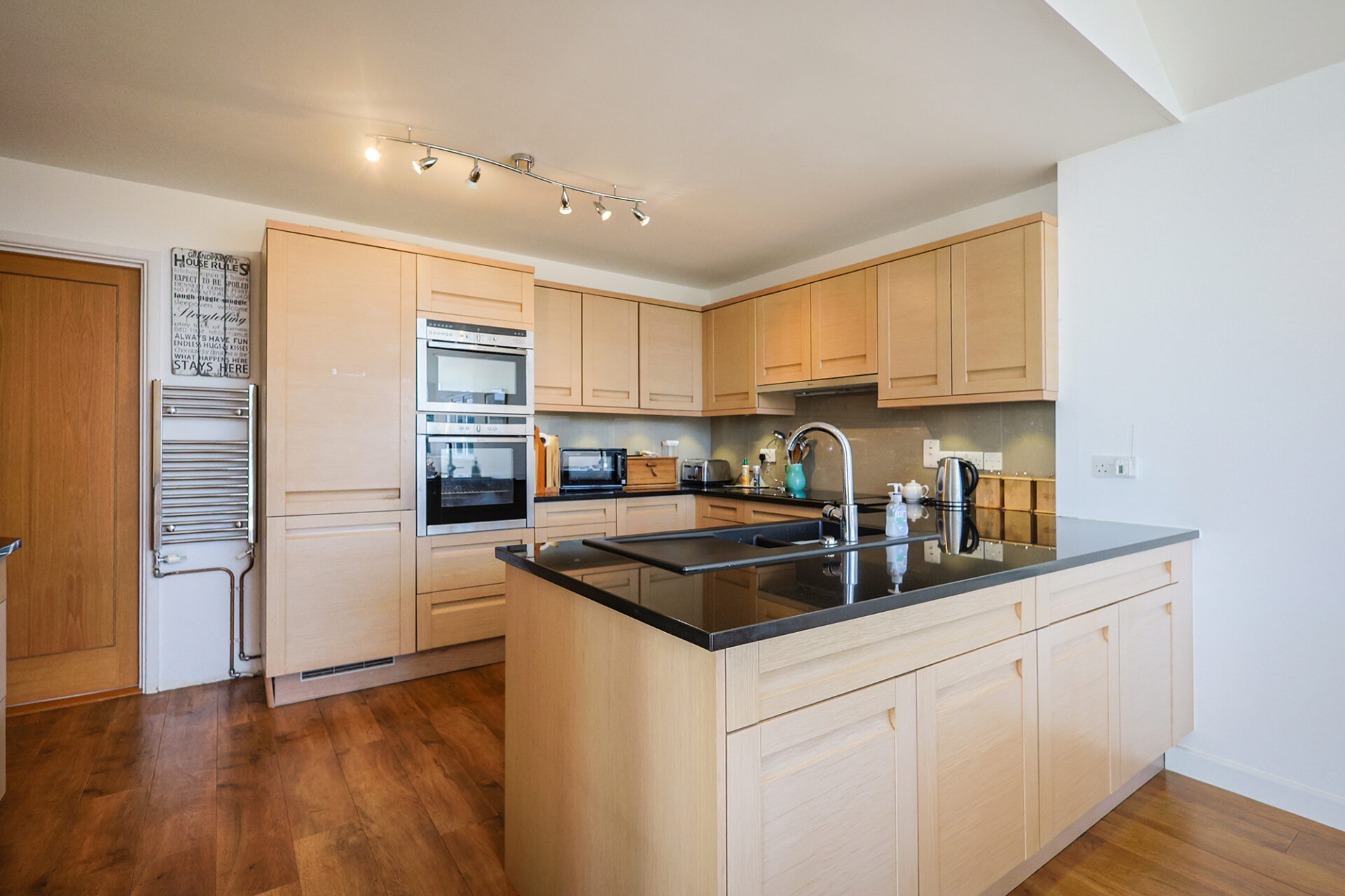 The rooms are bright and spacious and include a lovely kitchen open to a dining area with vaulted ceiling and access to the rear garden. A second dining area is located in the sitting room.
