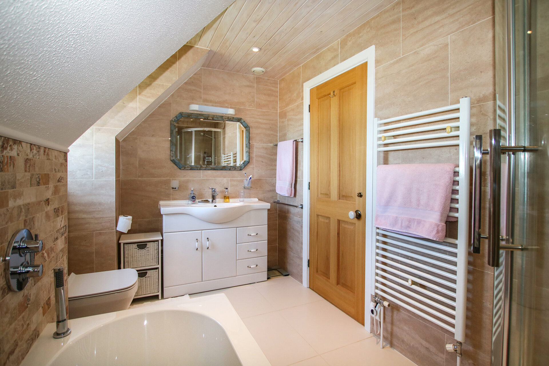 This beautifully and immaculately presented cavity built chalet bungalow provides spacious accommodation with sea views being enjoyed from the majority of rooms. On the ground floor, there is a well equipped kitchen which opens into the dining room, a generous lounge, fourth bedroom, which is currently used as an office, W.C and utility room, on the first floor there are three bedrooms, one with ensuite shower room and a family bathroom. To the front of the property is parking for several cars along with an enclosed patio, ideal for enjoying the stunning sunsets and to the rear a fully enclosed garden making an ideal space for children and pets.