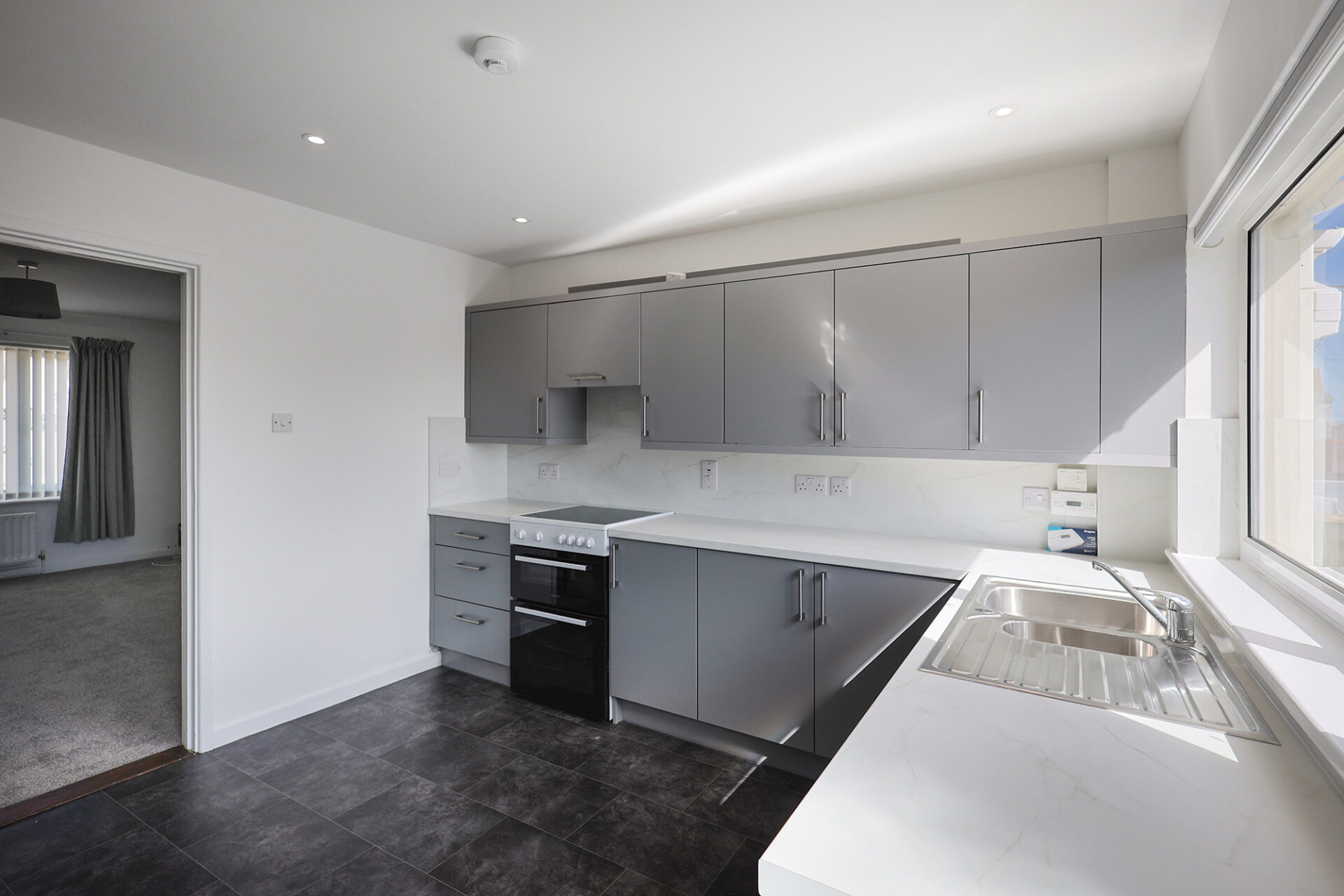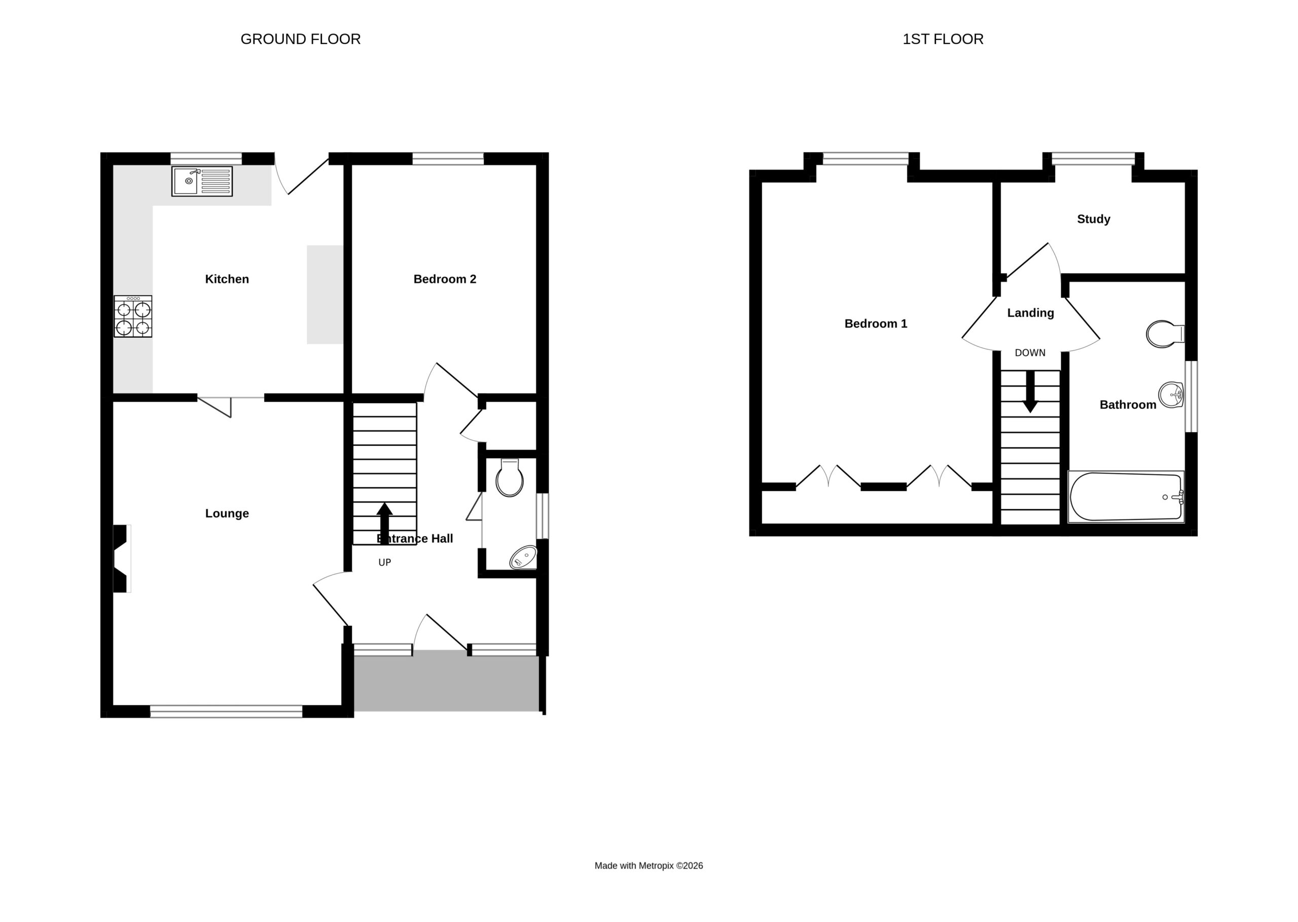 The accommodation is well proportioned and comprises two double bedrooms, plus a study, a family bathroom, and a separate WC.  It also benefits from a newly fitted kitchen and a spacious lounge. Externally, the property offers low-maintenance front and rear gardens, along with a parking for one car. Additional features include newly fitted carpets throughout.